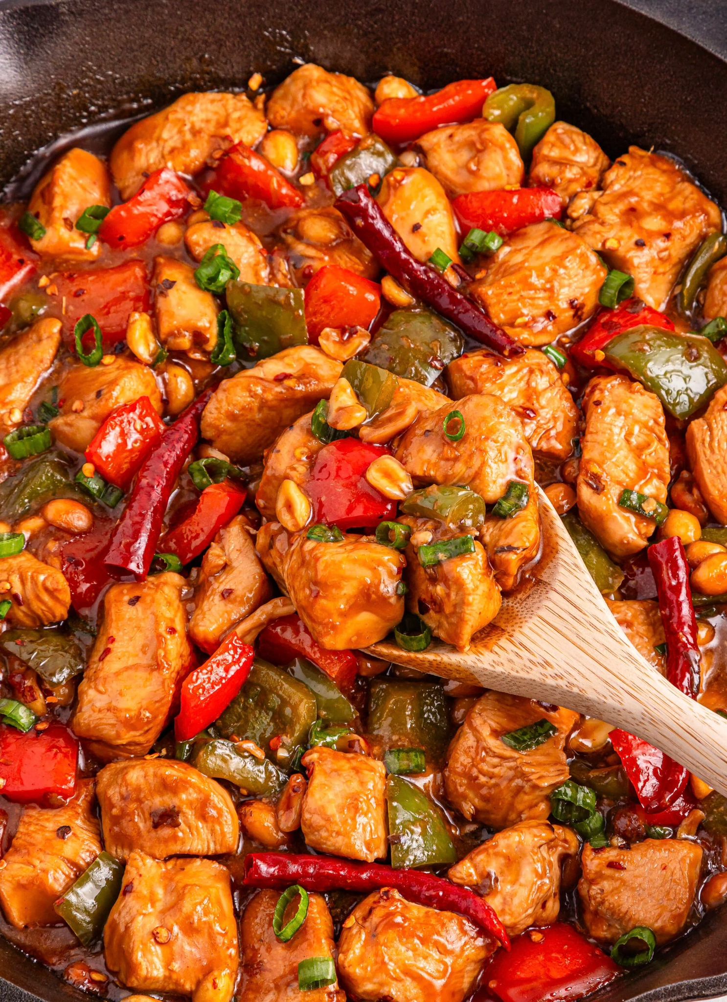 A Classic Spicy Stir-Fry Featuring Chicken, Peanuts, And Vegetables.